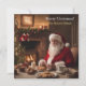 Eine personalisierte Weihnachtskarte mit dem Weihnachtsmann, der in einem Wohnzimmer mit einem schönen Kamin und Weihnachtsbäumen sitzt und die Kekse für ihn von den Kindern isst. Dieses Design wurde von Debbie Quick aus Debs Creative Images erstellt: www.debscreativeimages.com