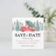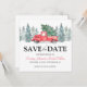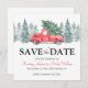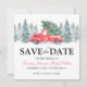 Rustikale Winterhochzeit bewahrt die Dattelkarten mit einem schlichten, weißen Hintergrund, Aquarettbäumen, einem Vintagen roten LKW, Weihnachtsbaum und einer Save the Date Vorlage, die leicht zu personalisieren ist.