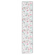 Spaß und bunter Weihnachtsläufer mit dem Weihnachtsmann im Schlitten mit seinen Rentieren, Weihnachtsbäumen, Viktorianischen Ornamenten, Bonbons, Strümpfen, Schneeflocken und vielem mehr. So ein amüsanter Tischläufer, um deinen Weihnachtstisch zu verkleiden!