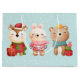 Eine Geschenktasche mit niedlicher Illustration mit einem Hasen, einem Bären und einem Reh, die alle in festlicher Kleidung gekleidet sind. Adorable und skurril.