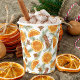 Diese Papiertassen sind mit Zitrusfrüchten und Gewürzen gestaltet und eignen sich hervorragend für Feiertage und Weihnachten-Party. Das Muster besteht aus orangefarbenen Scheiben, Zimtstangen, Anis und Kiefernspießen, die eine Erinnerung köstlicher Urlaubsstimmung ermöglichen.