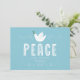 Diese Ferienkarte ohne Foto zeigt eine Taube über dem Wort Ruhe auf hellblauem Hintergrund. Es hat Platz für einen Gruß, Ihren Namen und das Jahr.