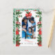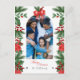 Fröhliche Weihnachtspostkarte mit Foto, Weihnachtswunsch und Empfängeradresse mit Blumendekorationen. Sie können Ihr Foto, Ihre Farben und Ihren Text ganz einfach anpassen, indem Sie auf "Personalisieren Sie diese Vorlage" klicken. Wenn Sie Probleme haben, das Foto anzupassen, klicken Sie auf Bearbeiten mit dem Design-Tool und es bringt Sie zu einem Online-Designer, wo Sie Dinge ändern, verschieben und sogar den Schriftart-Typ ändern können. Diese Postkarte eignet sich als Familiengepäck für die Weihnachtszeit, eine nette Art, Ihren Freunden und Ihrer Familie herzliche Wünsche zu senden.