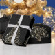 Schöner Weihnachtsbaum in goldfarbenem Imitat mit Sternen auf schwarzem Hintergrund. Ideal für diese Geschenke!