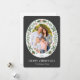 Die Weihnachtskarte ist mit einem ovalen Foto-Rahmen mit Wintergrün und roten Heiligbeeren auf dunkelschiefergrauem Hintergrund geschmückt. Personalisieren Sie diese moderne elegante Karte, indem Sie Ihr Foto, Familienname und Ihre eigene Nachricht (oder verwenden Sie die angezeigte) hinzufügen.