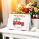 Weihnachtsfeiertag geklappte Grußkarte mit Vintagem rotem LKW mit einem Weihnachtsbaum. Weihnachten Gruß Weihnachten Weihnachtskarten. Karo unten in unserer Shop Kollektion für weitere Produkte mit diesem Design.