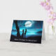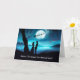 Eine Hochzeitskarte zum Weihnachtsabend mit einem romantischen Paar, das gegen das Mondlicht schweift, wobei das St. Nick im Hintergrund seine Runden macht.