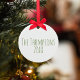 Niedlich Merry Mistletoe Weihnachts-Weihnachtsgeschenk Foto Ornament. Personalisiert mit einem individuelle Name. Ein trendiges niedliches Weihnachtsgeschenk. Eine wunderbare Art, die Ferien zu feiern. Dieses Design zeigt Weihnachtsferien fröhlichen niedlichen Mistleton, moderne elegante grün, und rot, Foto einfache minimalistische klassische traditionelle Urlaubsgrün, botanisch grüne Blätter Blattwerk, mit Aquarell rotes Band, modern und minimalistisch Urlaub, Kunstwerke von Laura Lacina, ein Weihnachtsgeschmack, Weihnachts-Foto, niedliche Kalligraphie Schrift Typografie Schriftart