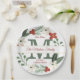 Weihnachts- und Feiertagskranz-Design mit einem "Frohen Weihnachten"-Gruß darunter, und Ihr Name und Datum Ihre Familie wurde auf einem weißen, goldgerippten Streifen über Ihren letzten Start gelegt. Die Farben sind gedämpft, rustikal rot bis dunkelrot, dunkelgrün, winterweiß und weiß.