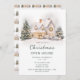 Festliche Weihnachtsfeier Party Einladung mit einem schönen Weihnachtsbaumhaus, Schnee, Feenlampen und Kränzen. Ideal für ein Open House Party. Die Wörter können geändert werden, um Ihre eigenen Angaben oder Anforderungen Anzug