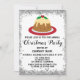 Feiern Sie die Weihnachtszeit mit diesem festlichen Weihnachtskuchen auf einem roten Teller Unternehmen Jahresfeiertag Weihnachten Party Einladung. Die Party-Details sind in einer skurrilen, fett schwarzen Schriftzeichen-Typografie mit einem silbernen Glitzer Glitzern-Rahmen und weißem Hintergrund geschrieben. Diese Einladung eignet sich perfekt für ein Party im Urlaub, Weihnachten und Winter!