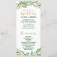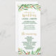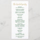 Dieses Weihnachtsfest ist perfekt für eine Winterhochzeit. Das Design ist mit einem grünen Kranz in Aquarelltönen mit roten Beeren und einem eleganten Imitat Gold Glitzer Schriftart ausgestattet. Geben Sie den Namen der Braut und des Bräutigams, das Datum und den Ort der Hochzeit, Dankeschön-Nachricht, Dienstordnung, Brautparty und ein optionales "in Loving Memorial" ein. Bitte beachten Sie: Dieses Design enthält keinen echten Gold-Glitzer. Es ist eine qualitativ hochwertige Grafik, die wie glänzende goldene Funkeln aussieht.