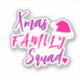 Moderne rosa und lila Script Weihnachten Familiengestalteraufkleber mit Herz und Weihnachtsmannmütze.