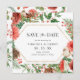 Diese wunderschöne, moderne Hochzeitsfeier bewahrt die Dattel-Ankündigungskarte mit eleganten, wasserfarbenen Blume mit Heiligbeeren, Pinecones und Grünpflanzen. Auf der Rückseite der Karte befindet sich ein wunderschönes, skurriles Muster. Finden Sie passende Artikel in der Holiday Red Winter Botanical Christmas Collection.