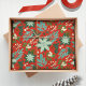 Dieses wunderschöne Weihnachtspapier zeigt handgezeichnete Blumenelemente in verschiedenen Tönen grün, minz, aquamarin, cremefarben. Dazu gehören Kiefern, Blume, Sprigs, Blätter, Beeren in einem modernen Designmuster in einem durchdachten, stilvollen Gesamtdruck. Die Hintergrundfarbe ist ein traditionelles Weihnachtsrot, klassisches Rot. Original Artwork von Caroline Bonne Müller
