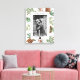 Eine wunderschöne familiäre Happy Holidays Foto Leinwand, die mit Ihrem Foto und Ihrer Familie angepasst werden kann. Koniferen und Kiefernkonen im Hintergrund mit Ihrem schönen Foto in der Mitte.