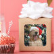 Dress up your holiday cards and gifts with this niedliche Aufkleber! Das Design zeigt ein Foto eines bezaubernden Golden Retriever Hundes, der eine Weihnachtsmannmütze vor einem Weihnachtsbaum trägt. Fügen Sie Ihren Namen und Ihre benutzerdefinierte Nachricht hinzu!