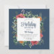 Weihnachts-Feiertag Brunch Festive Floral Einladungen bietet ein elegantes Urlaubsdesign mit einem Aquarell Winter floralen Rahmen von roten Poinsettias, Grün und Kiefernzapfen auf blauem Hintergrund. Personalisieren Sie Ihre Weihnachts-Party Einladungen nach Ihren Wünschen. Bearbeiten Sie den Text einfach in den dafür vorgesehenen Textfeldern.