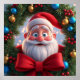 Der bezaubernde Cartoon Santa Claus lächelt inmitten eines geschmückten Weihnachtsschreins mit Ziergegenständen und festlichen Lichtern. Ideal für Urlaubsthemen, Weihnachtsgrüße und fröhliche saisonale Darstellungen.