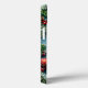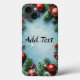 Weihnachtsdekorationen mit roten Ornamenten, grünen, immergrünen Zweigen und zarten Schneeflocken auf festlichem Hintergrund, die eine fröhliche und saisonal festliche Atmosphäre schaffen, während der Urlaub Freude inspiriere.
