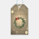 Adorable Weihnachtskranz und goldene Konfetti auf goldenem Hintergrund.