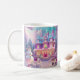 Weihnachts Fantasy Tasse - die Farben sind lila, pink, aqua blau, rot und weiß.
