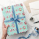 Dieses Verpackungspapier ist vielseitig und kann für Geschenke oder Kunst- und Handwerksprojekte verwendet werden. Es ist ideal für jeden Anlass wie Weihnachten, Geburtstage, Hochzeiten, Brautpartys, Babyduschen, Jahrestage oder allgemeine Geschenke. Niedliche festliche Flamingos ziehen Schlitten, Kränze und Winterschneeflocken auf grünem Hintergrund.