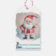 Ein festlicher Weihnachtstag zeigt einen fröhlichen Weihnachtsmann, der in seinem klassischen roten Anzug geschmückt ist. Schneeflocken fallen sanft um ihn herum, um den Geist der Ferienzeit zu erfassen.