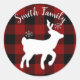 Weihnachtsfest Hirsch auf Buffalo Kariert Custom Runder Aufkleber