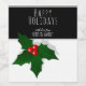 Stilvolles Schwarz-Weiß-Label für Weihnachtsfeiertage mit einem schönen Urlaubswunsch. Das Etikett hat eine Heilige Baumbeere auf weißem Hintergrund. Der Text ist in trendy weißer Farbe auf schwarz. Personalisieren Sie das Label mit Ihrem Text, Gruß und Namen. Elegantes Weihnachtsgeschenk für Ihre Freunde, Familie, Mitarbeiter, ...