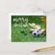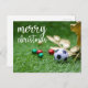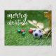 Weihnachtsfest im Fußball mit Ball auf grünem Gras Postkarte