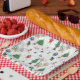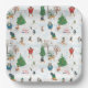 Niedliche Wildtiere im Schnee mit Eis-Skaten, Snowboards, Weihnachtsbäumen, Schneeflocken und Happy Holidays.