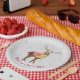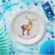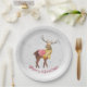Grosses Buchhirsch in Schneeflocken mit Winterschal und rotem Frohen Weihnachtstext auf silberner Schneeflocke. Text ist bearbeitbar.