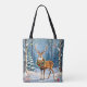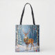 Eine wirklich süße Urlaubstasche mit festlichem Hirsch stehend in einem festlichen Winterwunderland bezaubernd dekoriert in Weihnachtsspass! Füllen Sie es mit Geschenken und nutzen Sie es als wiederverwendbare Geschenktasche!