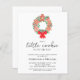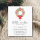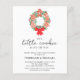 Planen Sie eine Weihnachts- / Feiertagsdusche? Diese einfache, moderne Einladung ist mit einem festlichen Kranz aus Lebkuchengebäck, Heiligem, Pinienblättern und einem roten Bogen dekoriert. Es steht "Unser kleiner Keks ist unterwegs" in stylischer Schrift-Typografie. Einfach anpassbar. Original Wasserfarbe © Michele Davies.