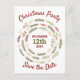 Weihnachts-Party Postkarte mit individueller Nachricht auf der Rückseite. In diesem Winter, in der Urlaubssaison Design hat Ringe von Kiefern, Winterblättern und Weihnachtsschmuck, um Ihr wichtiges Datum zu markieren. Diese-Karte hat eine festliche Farbpalette von Rot, Grün und Gold. Die Vorlage ist für Sie bereit, den Titel (z.B. zu Feiertag), das Datum und Ihre Nachricht zu bearbeiten. Bitte stöbern Sie in unserem Geschäft um Weihnachtsdekoration und Geschenke zu koordinieren.
