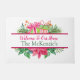 Schöne Weihnachtsgrün, Poinsettias, Beeren und Geschenke in schönen Aquarellen. In der Mitte steht Willkommensgruß zu unserer Zuhause und Sie personalisieren sie mit Ihrem Familiennamen. Das wird eine schöne Ergänzung zu Ihrem Einstieg in die Ferienzeit sein! Weitere Designs finden Sie unter www.zazzle.com/digiscrapthat