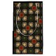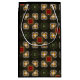 Schönes symmetrisches abstraktes Muster mit klassischen Weihnachtsfarben mit einer modernen, abstrakten geometrischen Drehung, Blumenquadrate und rote Kreuze, umgeben von goldenen abstrakten Formen und gelben und weißen Dreiecken, die farbenfrohe Gänsedchen anregen. Diese fröhliche Tasche eignet sich perfekt für Ihre Weihnachtsgeschenke, ist aber das ganze Jahr über einsetzbar.