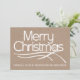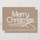 Business rustikale Typografie Frohe Weihnachtsfeiertage Vintage Karte mit dem Text "Frohe Weihnachten" und eine Schneeflocke in dem Buchstaben "a" in weiß auf beige Handwerk Look Papier. Auf der Rückseite legen Sie Ihr Logo. Diese minimale, einfache Land, rustikale Western elegante und stilvolle Flachkarte mit einem modernen Flair ist vollständig anpassbar. Es ist perfekt für die Grüße Ihrer Saison zu Ihren Kunden.