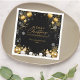 Weihnachtsfeiertag Schneeflocken Glitzern und Snowmen Napkins. Weihnachts-Ansammlung in Schwarz und Gold mit diesen Servietten mit Schneeflocken, Glitzern, Stars und Schneemännern. Ideal für festliche Ansammlungen und Dezember-Events. Legen Sie Ihren eigenen Familiennamen oder den Namen eines anderen oder löschen Sie den Text, wenn Sie ein einfacheres Design gewollt. Übereinstimmende Artikel in meinem Geschäft UnuqieDesigns.