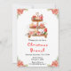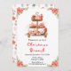 Diese elegante und festliche Brunch-Einladung bietet einen Kuchenstand mit Lebkuchen, Makaronen, Süßigkeiten, heißem Kakao und einem Teekessel. In den Ecken sind schöne rote Poinsettia Blume. Der Text kombiniert handgeschriebene Skripte mit serifenlosen Schriftart für ein stilvolles und modernes Design. Dies ist ideal für einen Weihnachtsbrunch oder ein Tee-Party.