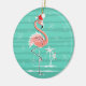 Weihnachtsflamingo-Streifen-Textverzierung rund Keramik Ornament