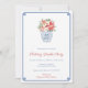 Traditionell in Rot und Weiß, Weihnachtsgebäck und Blattwerk in einer Vase im Stil Ginger Jar. Die Vorderseite hat eine Grenze mit "griechischem Schlüssel" und die Rückseite hat einen Backer mit "griechischem Schlüssel". Sie können die Kontrastfarbe auf jeder Seite (hier als Mittelblau angezeigt) in eine beliebige Farbe ändern, indem Sie das Designwerkzeug (unter dem Bereich für die Textanpassung, klicken Sie auf "Weitere Anpassung") eingeben und dann die Hintergrundfarbe auf jeder Seite der Einladung ändern.