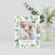Gute Ferien! Schicken Sie uns Ihre Urlaubswünsche mit dieser grünen Postkarte. Es zeigt Aquarellbilder von Hollen, Kiefernnadeln und Eukalyptus und Evergreen mit klassischer Typografie. Personalisieren Sie Ihre Fotos mit Ihren Favoriten und fügen Sie Namen und Nachrichten hinzu. Matching-Elemente sind verfügbar.