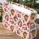 Machen Sie Ihre Geschenke in dieser Urlaubssaison mit einem individuellen Foto Geschenksack auffällig! Diese lustige Vorlage ist personalisiert mit fünf Ihrer Lieblings-Foto-Set in whimsical hat Rahmen. Mit festlichen Weihnachtsmannmützen, niedlichen Elfenstilen und Rentierern, mit einem Hintergrund von Weihnachtsbäumen, Beeren, Schneeflocken und Sternen. Dieses einfache, niedliche Design ist perfekt für Kinder, Familien, Freunde und Haustiere! Eine Allover-Geschenktasche, erhältlich mit matt oder glänzend Finish. Druckfarben: Rosa, Rot, Grün, Braun, Weiß und Gold.