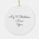 Dieser bezaubernde Weihnachtsschmuck zeigt ein Aquarellbild eines niedlichen Fuchses mit seinen Weihnachtsgeschenken auf der einen Seite, dem Ort, an dem Sie es auf der anderen Seite personalisieren können.