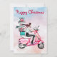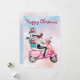 Weihnachtsfrau auf einem rosa Roller Feiertagskarte