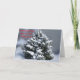 Der schneebedeckte Evergreen bringt den Wunsch nach Weihnachtsfrieden.