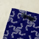 Elegantes, stilvolles und raffiniertes Muster mit weißer Garne auf blauem Hintergrund. Modernes und trendiges Geschenk, ideal für Weihnachten oder Neujahr.