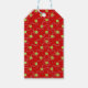 Dieses Geschenk-Tag zeigt eine Weihnachtsgarage mit grünen Weihnachtsschmuck auf einem Boden rot mit grünen Diamanten.